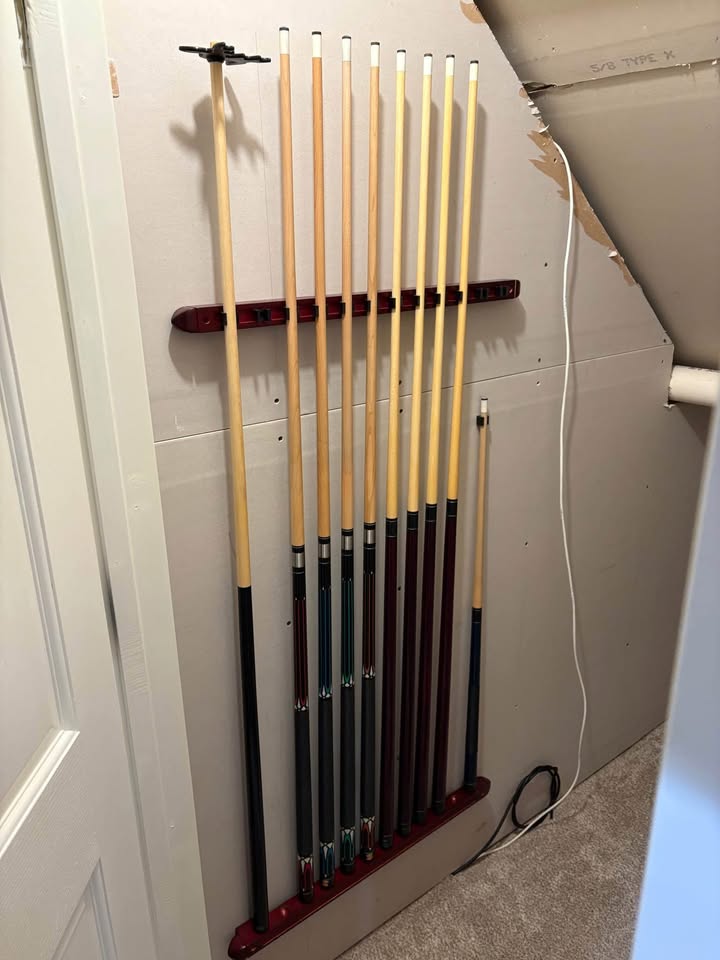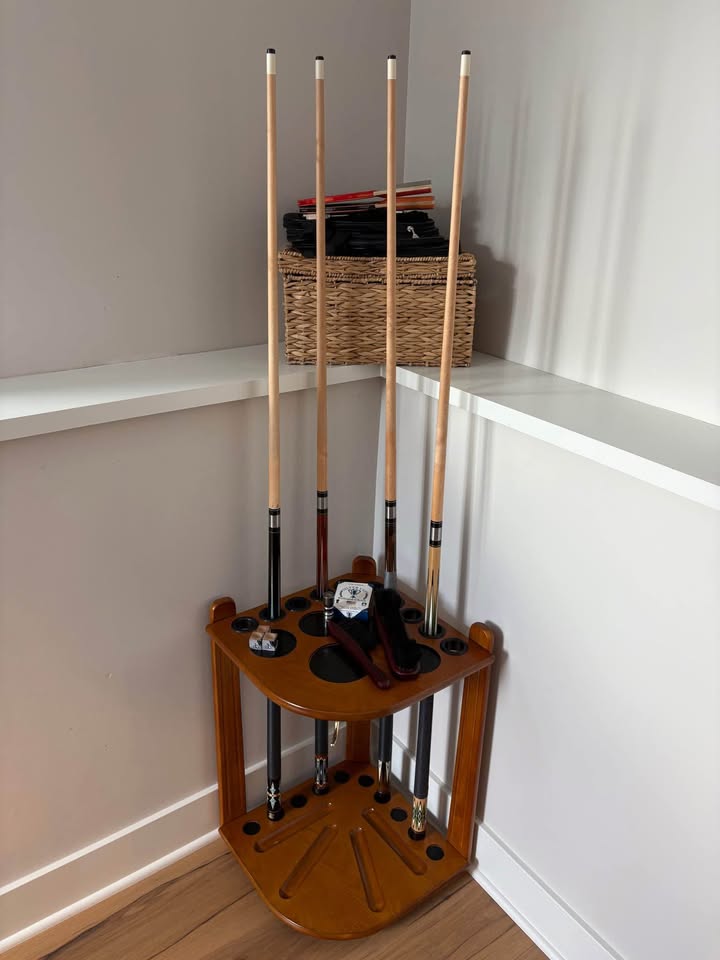 Cue Racks – Free Standing & Wall-Mount Multiple Styles Available for different prices ranging from $40-$80 Cues not included